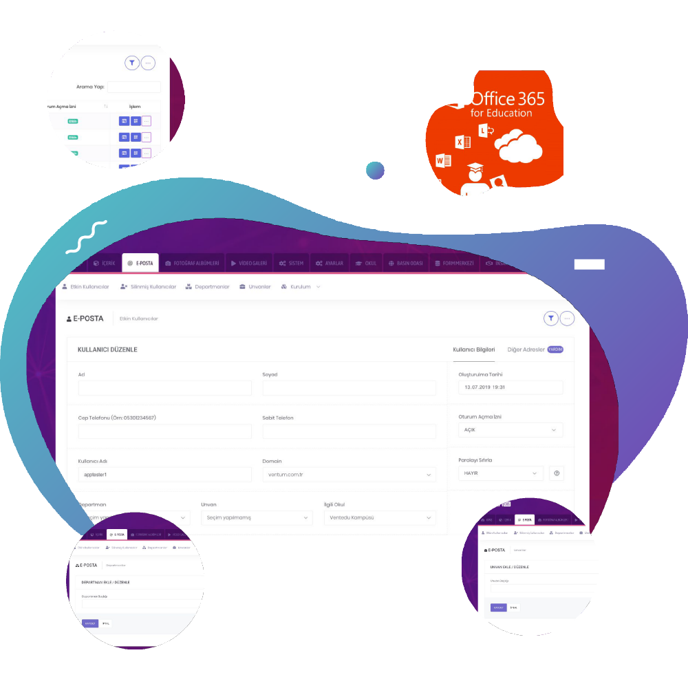 Okullar kendi şifreleri ile e-posta hesabı oluşturabilir. (Her okul sadece kendi hesaplarını görür ve yönetir.)